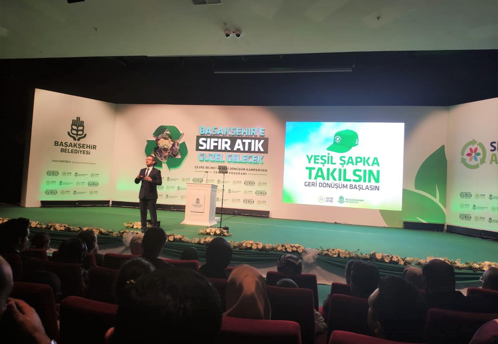 Sıfır Atık projesiyle ilgili tanıtım filminin izlenmesinin ardından kürsüye gelen Başakşehir Belediye Başkanı Yasin Kartoğlu, “İlk etapta 10 bin çocuğa ulaşıp onların da geri dönüşüm kampanyamıza aktif olarak katılmalarını sağlayacağız.” ifadelerini kullandı.