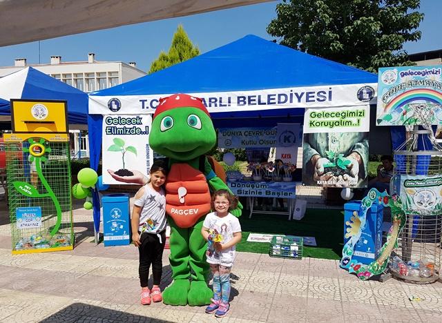 Alana kurulan stantlarda katılımcılara çevre, geri dönüşüm ve atık yönetimi ile ilgili bilgilendirmeler yapıldı. Bölgedeki öğrencilerin Kaya Geri Dönüşüm tesisine yaptıkları ziyaretlerden oluşan fotoğraflarla süslenen alanda, ambalaj atıklarının geri dönüşüm aşamalarını gösteren videolar izletildi. PAG ile gün boyu eğlenen çocuklar, rüzgar gülü ve balonlarla keyifli oyunlar oynadılar.