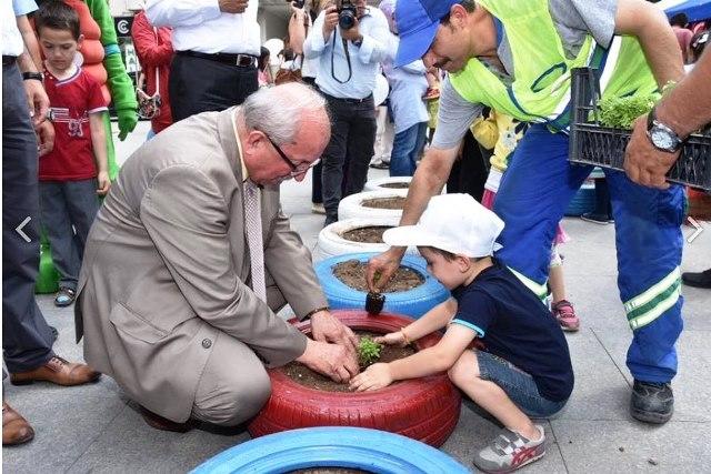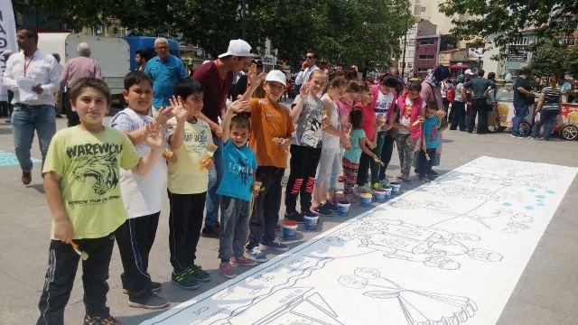 Ayrıca Çevre temalı görsellerin olduğu büyük fiş çocuklar tarafından gün boyu boyandı. Etkinliğe katılan çocuklarla tek tek ilgilenen Başkan Kadir Albayrak, çevre bilincinin arttırılması için atık lastiklere çocuklarla birlikte çiçek ektiler.